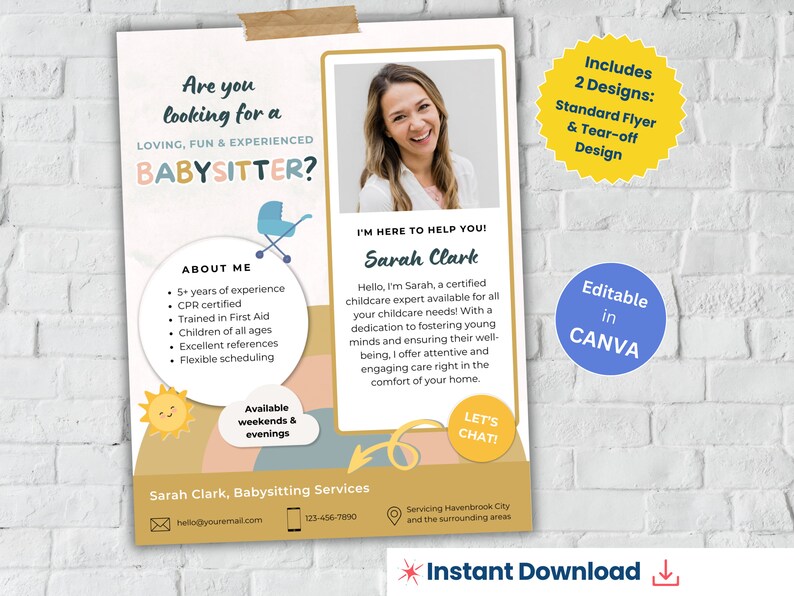 Creating a compelling babysitter flyer template is a crucial step in attracting clients and establishing a successful babysitting business. By focusing on a visually appealing design, clear and concise content, and strategic distribution methods, you can significantly increase your visibility and reach the families who need your services. Remember to tailor your flyer to your specific niche and continuously monitor its effectiveness to optimize your marketing efforts. Investing the time and effort into crafting a professional flyer will undoubtedly pay off in the long run, providing you with a steady stream of clients and the peace of mind that comes with knowing you're offering reliable and trustworthy childcare. Don't underestimate the power of a well-designed flyer – it's a simple yet effective tool that can make a big difference in your business.
